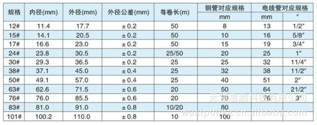 2、普利卡金属软管与钢管依据内径尺寸对应。