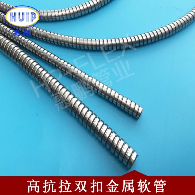 惠鹏304不锈钢双扣金属软管较之国内同类产品在各种性能和技术上有着革命性的改良,在抗拉、抗压、抗暴、防脱钩及使用寿命等参数与传统产品相比有着300%的提高;解决了同类产品自然延伸的严重缺陷,将传统产品自然延伸率的150%降低到5%以内,更好的保护了内部线路和塑性管路。