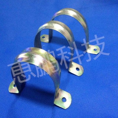 彩锌骑马卡采用新镀锌大卷分条加工后冲压而成,分为直接镀彩锌以及彩锌板压制两种。