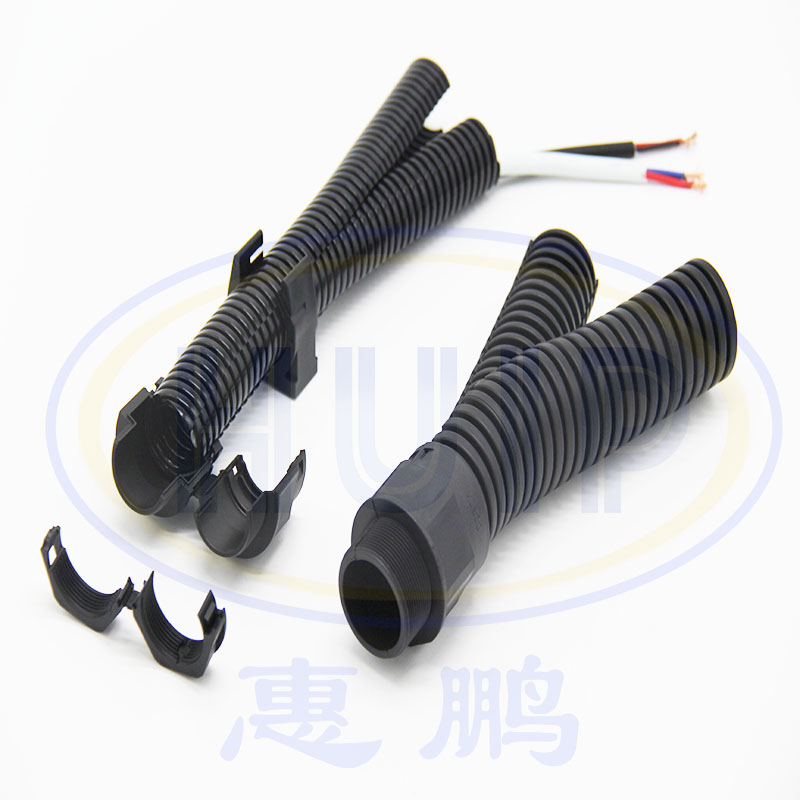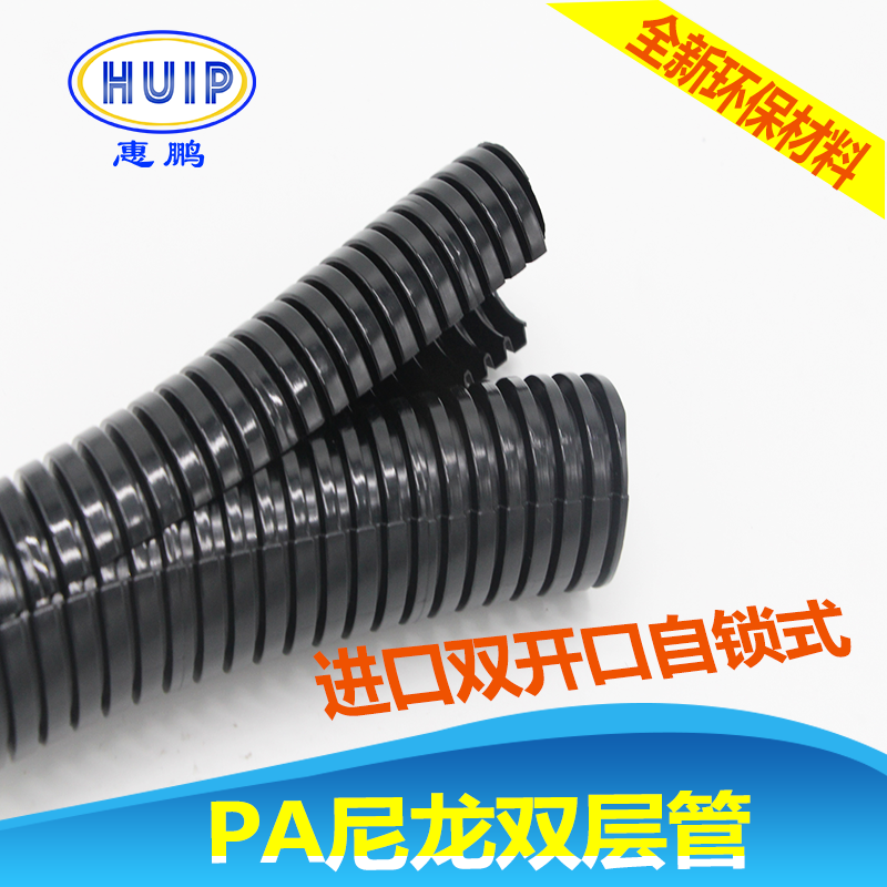双开口尼龙软管 在安装时只需剥开外层套管,将电缆放入内层套管中,然后将外层套管合拢即可,与可开式软管接头和锁紧螺母配套使用,是电缆线路二次维修的最佳选择。
