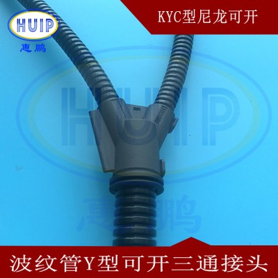 塑料波纹管三通接头 大Y型 线束管45度分支 可开式尼龙弹簧锁扣