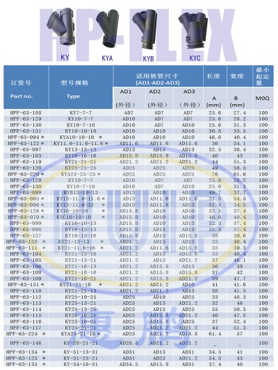 KYC型为Y型的大Y型 顶端V型呈45度分支 尼龙原料PA66材料,抗老化,汽车专用,弹簧式锁扣 ,安装便捷 选型请咨询客服